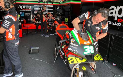Novità anche nel box Ducati (in foto la moto di Bagnaia, team Pramac). Oggi tutte le 4 GP 20 avranno sul semi manubrio i pulsanti per variare l’altezza della moto in marcia. Jack Miller aveva già sperimentato questo dispositivo nelle ultime gare della scorsa stagione, in Malesia Petrucci e oggi Dovizioso