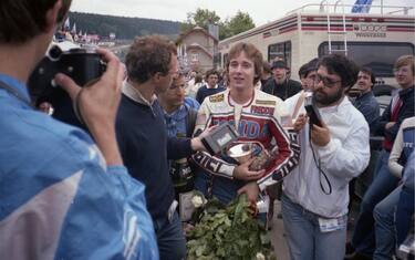 Comunque arriva la settima gara di quella stagione a Spa, circuito pazzesco, velocissimo, lungo, e la Honda col nuovo fenomeno e il campione preso dalla Suzuki non ha ancora vinto. Su quella pista il motore conta più del solito, è determinante e Lucky insiste tanto a dire che quello di Spencer è più veloce del suo che alla fine la Honda decide di montare il propulsore di Spencer sulla moto di Lucchinelli e viceversa. La cosa buffa, se vogliamo crudele, è che proprio con quel motore Freddie Spencer vince la sua prima gara e riporta la Honda dopo 15 anni al successo. Così noi giornalisti italiani siamo ansiosi di prendere le dichiarazioni del nuovo fenomeno che, come si usava fare allora, parla con coppa e corona d'alloro in mano mentre sullo sfondo si vede il circuito e credo il motor-home proprio di Lucchinelli. Insieme a me ci sono Paolo Scalera e Carlo Florenzano, che anche voi amici di Sky conoscete. Sembra ieri, ma sono passati quasi 38 anni. È per questo che, spero, un giorno diremo sembra ieri che eravamo confinati in casa….senza aspettare neppure una frazione di questo tempo, però.