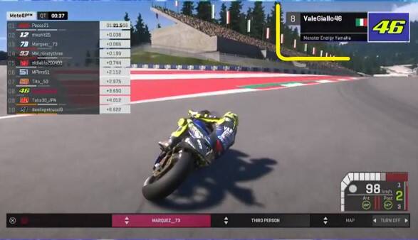 esportsCurioso e divertente episodio al GP virtuale in Austra: sul monitor della gara il nickname di Valentino Rossi è "ValeGiallo46" e non il tradizionale "ValeYellow46". Qualcuno ha forse già utilizzato il suo nome?