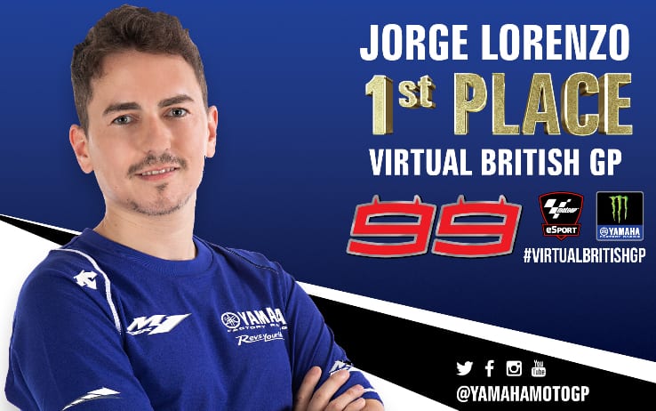 Prestazione perfetta a Silverstone per Jorge Lorenzo, che alla sua prima partecipazione in un GP virtuale sale sul gradino più alto del podio. A fine gara, sorprende tutti citando il console romano Giulio Cesare: "Veni, vidi, vici: sono arrivato qui come debuttante e ho subito conquistato pole e vittoria"