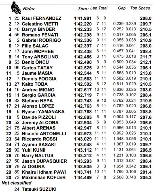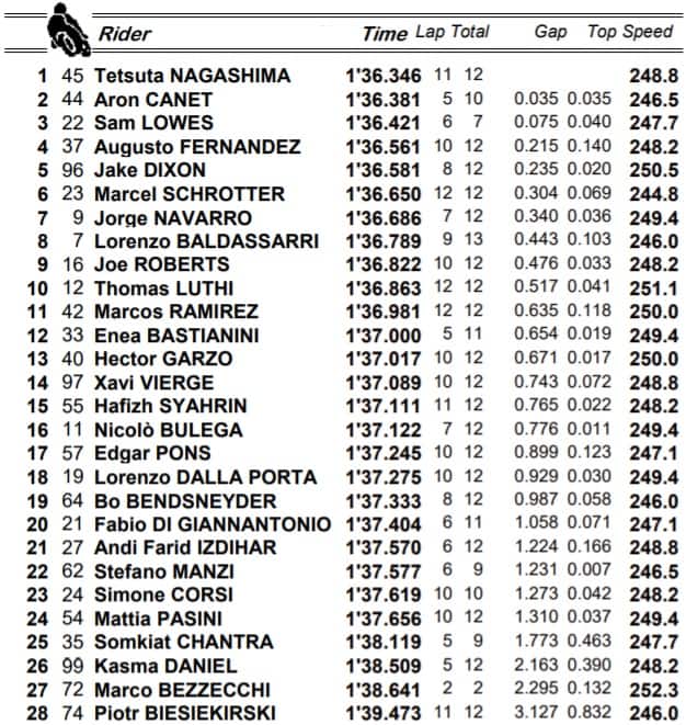 Moto2, i risultati del warm up