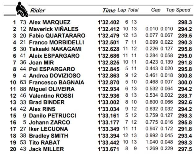 MotoGP, i risultati del warm up
