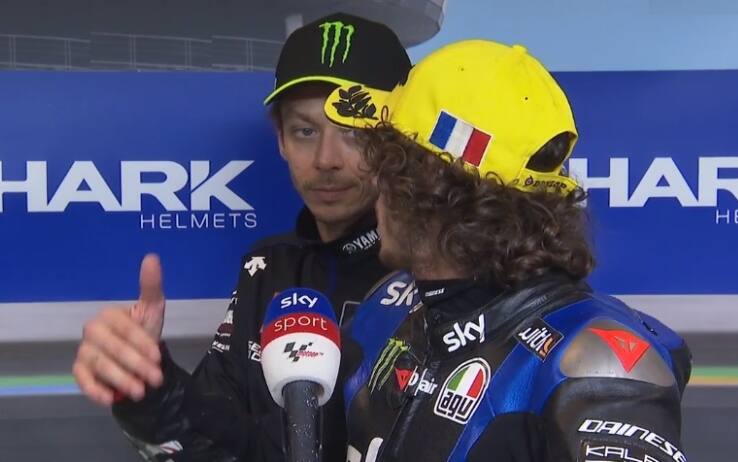 Durante il debriefing improvvisato in diretta su Sky con Bezzecchi, Rossi è apparso scuro in volto, deluso dopo la caduta al primo giro (per lui è il terzo "zero" consecutivo). Il pilota dello Sky Racing Team VR46 prova a descrivere così l’umore di Valentino: "Ha un po' le scatole girate, mi dispiace molto per lui. Valentino ci chiede sempre come sono andate le cose, sia quando vanno bene sia quando vanno male. Comunque mi ha detto che ho fatto una grande gara".