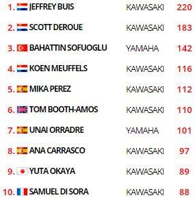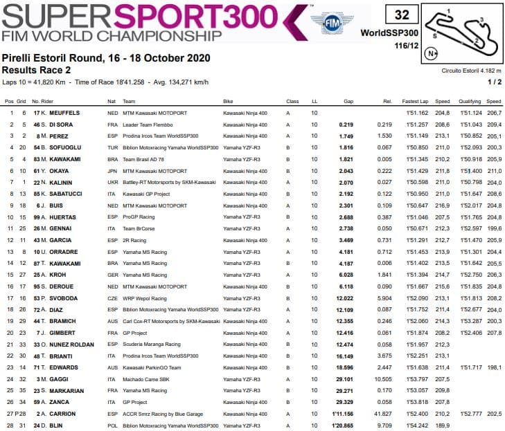 Si chiude nel nome di Koen Meuffels, che torna alla vittoria per la prima volta dopo il 2018 e balza al quarto posto finale in campionato. L’olandese ha battuto in volata Samuel Di Sora, mentre più staccato Mika Perez ha avuto la meglio su un folto gruppo di piloti per la terza posizione. Il migliore degli italiani è stato Kevin Sabatucci all’ottavo posto, con Mirko Gennai undicesimo e a punti. Ventiduesima posizione per Thomas Brianti, ventiquattresima per Marco Gaggi, ventiseiesima per Alessandro Zanca. Caduti invece Bruno Ieraci, Filippo Rovelli e Alfonso Coppola.