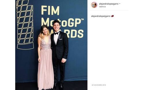 La coppia, elegantissima, ai MotoGP Awards (Instagram @alejandralopezgarro)