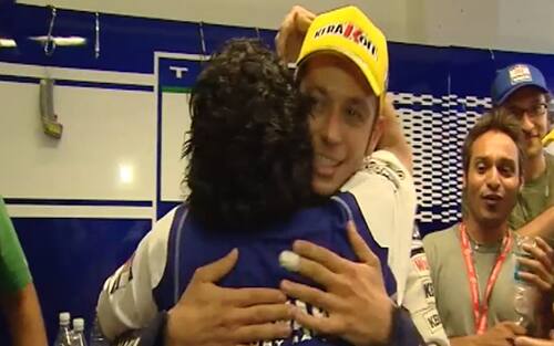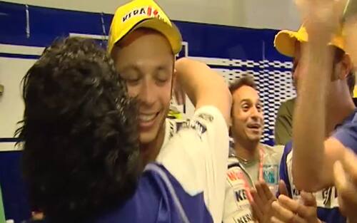 Maradona corse immediatamente ad abbracciare Valentino: "Sono contento che hai visto questa gara", disse un po' timidamente il Dottore