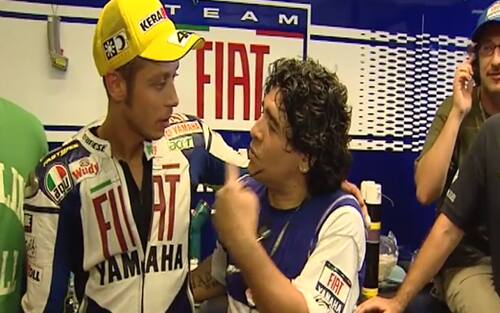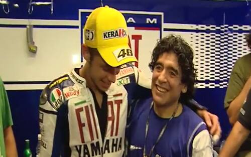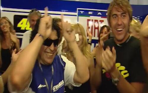 Poco dopo, Valentino ha postato il video di Maradona all'interno del suo box a Misano nel 2008. L'argentino fu accolto dal più classico dei cori: "Ho visto Maradona, innamorato son..."