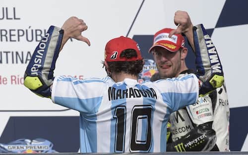 Nel 2015, la MotoGP fa tappa in Argentina. Valentino è un idolo nel catino di Termas de Rio Hondo, così quando vince decide di omaggiare l'amico Diego e tutta una Nazione, indossando la 'diez' della Selecion