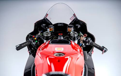 Per via del "congelamento" stabilito dalla federazione per il Mondiale 2021 (allo scopo di contenere i costi di produttori e team in seguito all'emergenza coronavirus), la moto mostrata ha dei componenti uguali al 2020