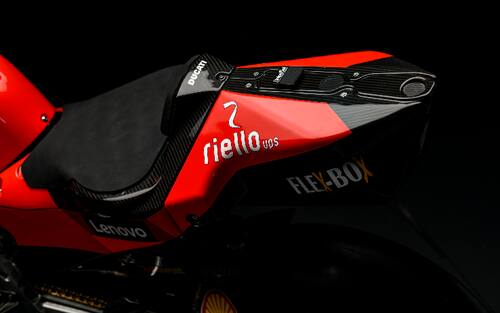Da un'attenta osservazione, si possono notare addirittura tre diverse sfumature di rosso nella nuova livrea Ducati: sotto il muso, sotto la sella e sotto le ali ci sono altre due sfumature di rosso rispetto al colore principale