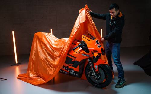 L'emozione di Danilo Petrucci, mentre toglie i veli alla sua nuova KTM Tech3