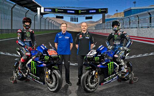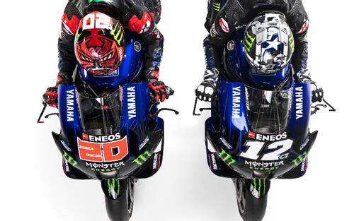 Quartararo e Vinales hanno tolto i veli alla M1: la livrea 2021 è più elegante, con una maggiore presenza del nero, che va a mescolarsi al blu Yamaha e al verde Monster. La grande novità è il numero 20 sul cupolino: la presentazione è stata infatti la prima volta di Fabio con i colori della Yamaha ufficiale. "Sono pronto a lottare per il Mondiale", ha detto il francese. "Abbiamo il potenziale per vincere il titolo, ma servirà più costanza", ha precisato Maverick