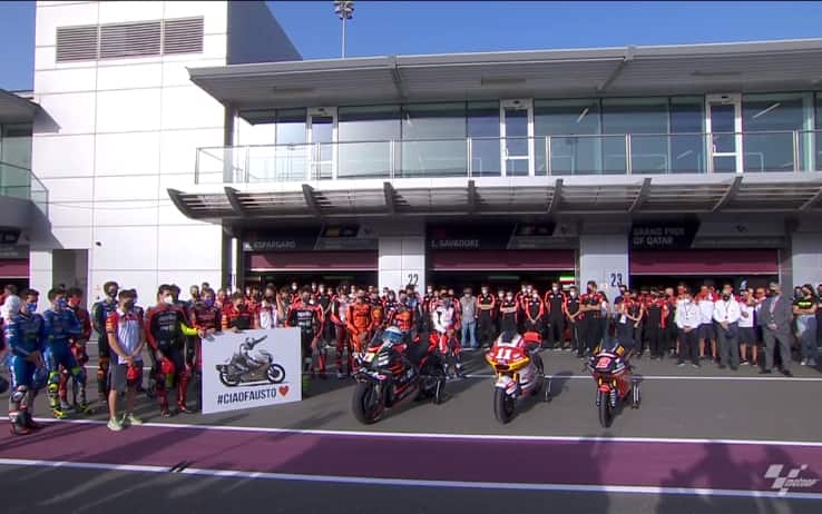 La prima domenica del Motomondiale 2021 si è aperta con il ricordo di Gresini: al termine del warm up di MotoGP tutti gli addetti ai lavori, dai piloti ai meccanici passando per gli organizzatori del Mondiale, hanno dedicato un minuto di silenzio a Fausto, morto di Covid lo scorso 23 febbraio a 60 anni