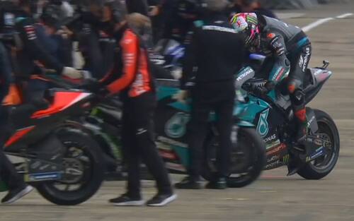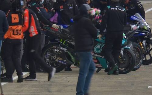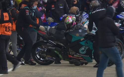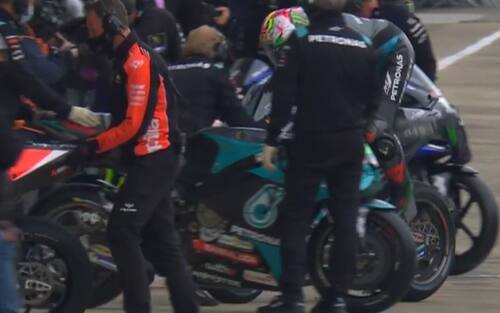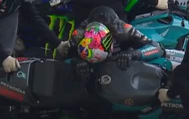 Morbidelli viene accompagnato al box e si sottopone ai primi esami. Successivamente arrivano le buone notizie: solo una distorsione al ginocchio sinistro per Franco