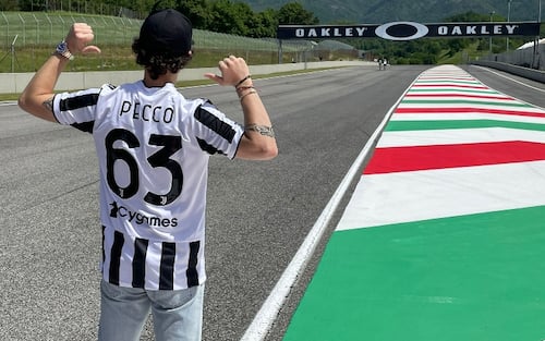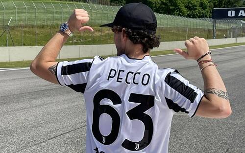 Dopo essersi proposto (scherzosamente) come nuovo allenatore della Juventus, Bagnaia ha ricevuto la divisa ufficiale bianconera, inviata in regalo direttamente dalla società di Torino (città natale del pilota Ducati). La consegna è avvenuta proprio sulla pista del Mugello, dove questo weekend si correrà il GP d'Italia (da vivere in diretta tv su Sky Sport MotoGP). Pecco è un tifoso della Juventus, proprio come il collega Fabio Quartararo