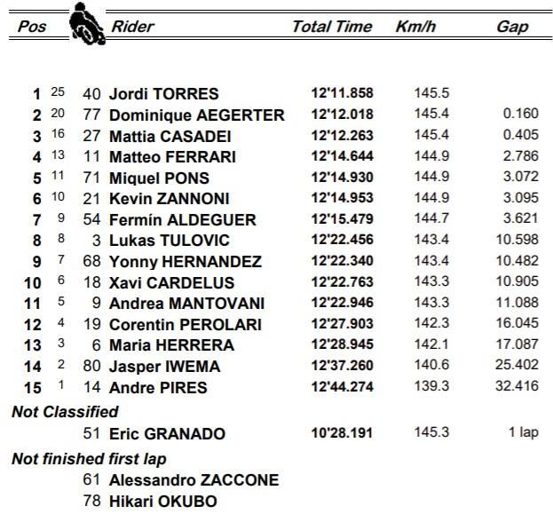 MotoE, Misano: Torres vince gara-1, Casadei è 3°. Out Zaccone e Granado. Tutti i risultati