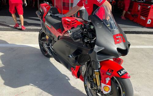 Appena le condizioni di pista sono migliorate nel pomeriggio, si è vista in pista anche la Ducati guidata da Pecco Bagnaia, reduce dalla strepitosa vittoria di domenica a Misano. Anche la casa di Borgo Panigale ha portato in pista una nuova carena