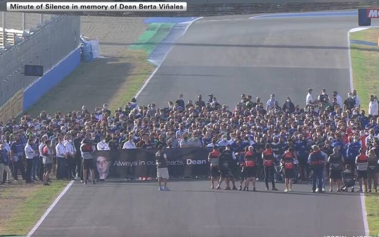 VIDEODolore e commozione a Jerez de la Frontera, dove è stato osservato un minuto di raccoglimento in memoria di Dean Berta Vinales. Presente anche il cugino Maverick. Il giovane pilota è morto a seguito di un incidente nel corso della Gara 1 della SuperSport300