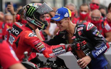 "So già che tanto andrà forte anche lui domenica, non penso tanto a oggi...": sorride Bagnaia nel parlare di Quartararo (al primo match point per il titolo), addirittura oltre la top ten dopo le prime due prove libere del GP del Made in Italy e dell'Emilia Romagna, 16°, mentre Pecco è 8°. "Mi sono trovato molto bene, non sono solo riuscito a fare un buon giro all'ultimo run, stavo provando la media dura ma col freddo non ha lavorato troppo bene. Il passo era molto buono, solo Miller ha fatto davvero la differenza", spiega Bagnaia. Sul tema gomme il ducatista aggiunge: "Quelli partiti con la usata stamattina sono andati più forte rispetto a quando hanno messo la nuova, è un aspetto su cui ragionare. Ho notato che all'inizio con la nuova ho faticato, invece Miller così come Marquez e Quartararo si sono trovati bene, dobbiamo chiarire il motivo". A proposito di Miller, è stato affrontato il discorso di eventuali giochi di squadra? "Spero non succeda, sono già stato massacrato abbastanza dopo Austin, dove oltretutto non era stato deciso niente prima della gara. Non deve essere detto a me, io devo essere concentrato, saranno loro poi a decidere. Dobbiamo anche ricordare che io e Miller ci stiamo giocando il secondo posto, anche se io sono ancora in lotta per il titolo. Se lui dovesse andare più forte, non credo ci saranno ordini di scuderia".