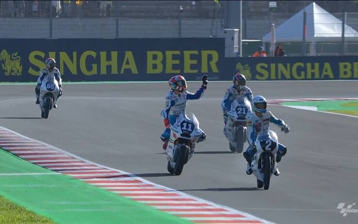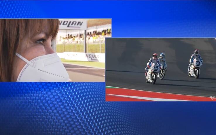videoInizio di giornata molto particolare a Misano: il figlio di Fausto Gresini, Luca, ha riportato in pista insieme a Bulega, Di Giannantonio e Capirossi la moto Garelli due tempi con la quale il padre aveva vinto il titolo in 125 nel 1987, per celebrare la memoria del Team Manager scomparso lo scorso 23 febbraio a causa del Covid. Il tutto sotto gli occhi commossi della moglie Nadia