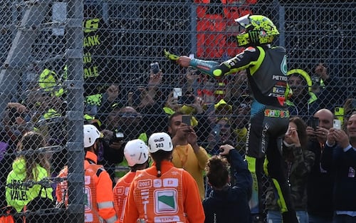 Al termine della gara, Rossi è andato a salutare i suoi tifosi. Per Valentino è stato l'ultimo abbraccio con la sua "marea gialla" a Misano, un circuito speciale per il "Dottore", dato che vive nella vicina Tavullia (distante appena 13 chilometri dalla pista intitolata a Marco Simoncelli)