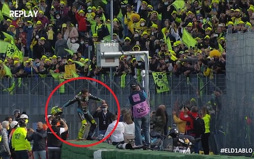 Ecco il momento esatto in cui Rossi lascia volare il casco verso i tifosi