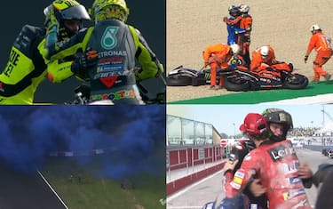 PETRUCCI E MIR - Contatto tra i due in avvio, entrambi finiscono a terra. Dopo la caduta si rialzano e si abbracciano. Petrux, che nel 2022 vivrà una nuova avventura nei rally, sui social saluta così Misano: "Il mio unico obiettivo era finire la gara per salutarvi tutti un'ultima volta dalla pista, ma purtroppo le corse sono crudeli e sono stato buttato giù. Ma questo è stato il mio 20° GP sul suolo italiano e sono stato così fortunato da averne vinto uno ed essere stato sul podio altre volte. Grazie a tutti!"