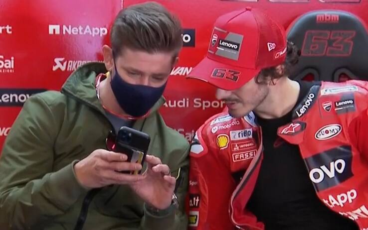 futuro coach?Nel sabato di Portimao, le telecamere hanno beccato Stoner nel box Ducati mentre dava consigli a Miller e Bagnaia prima delle qualifiche, quasi come fosse il loro coach. Le indicazioni di Casey hanno funzionato, dato che Pecco ha conquistato la pole proprio davanti al compagno di team Jack. Stoner, unico pilota in grado fin qui di vincere un Mondiale piloti con la Rossa nel 2007, si è poi unito ai festeggiamenti della Ducati al parco chiuso