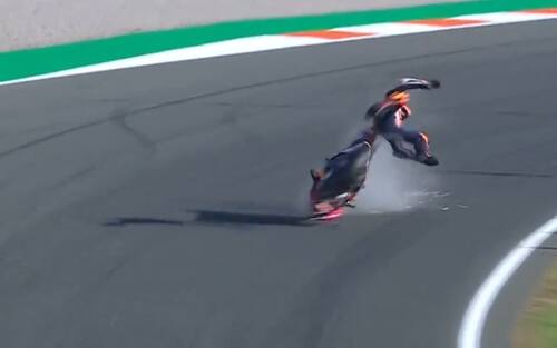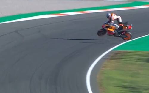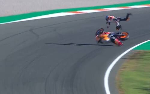 Pauroso incidente nella terza sessione di prove libere del GP di Valencia: alla curva 13 Pol Espargaró viene sbalzato e scalciato dalla sua moto, che fortunatamente rotola lontano da lui. Impatto molto violento con l'asfalto, in particolare il pilota spagnolo della Honda subisce un forte colpo al lato destro del torace