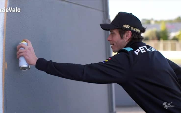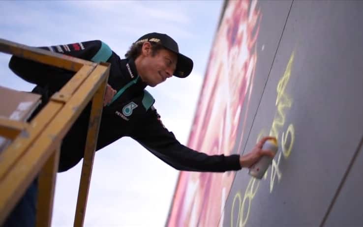 graffitiIl circuito di Valencia omaggia Rossi per il suo ultimo GP. Dopo quattro giorni di lavoro, l’artista Axe Colours ha completato il murale alto circa 15 metri dedicato al Dottore, realizzato interamente con spray. È stato lo stesso Valentino a mettere la firma finale, destreggiandosi anche con le bombolette: "È venuto bene, sembro anche più giovane", scherza il pilota con ironia. L'opera è raffigurata di fronte a una piazza che da ora in poi si chiamerà "Piazza Valentino Rossi"