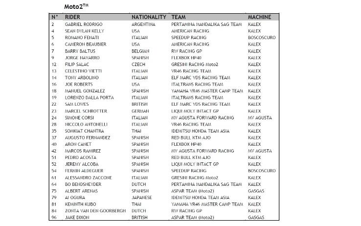 nuova stagione ©AnsaDalla Moto3 arrivano il neo campione iridato Acosta e Niccolò Antonelli, che farà coppia con il confermato Vietti nello Sky Racing VR46. Ritorno di Fenati in Moto2 dopo la bella stagione nella classe 'piccola'. Due rookies (Salac e Zaccone) nel team Gresini. Ecco la entry list del Mondiale 2022