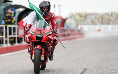 MISANO TRICOLORE. Domenica da favola per l'Italia nel GP di San Marino, 14° impegno stagionale: vittoria commovente di Bagnaia, che riesce a contenere gli attacchi nel finale di Quartararo e accorcia in classifica (ora a è -48 dal francese); straordinario anche il terzo posto di Bastianini, al suo primo podio in MotoGP. 'Passerella' per Rossi (17°), Morbidelli (18° al rientro dopo l'infortunio, al debutto sulla Yamaha ufficiale) e Dovizioso (21°).