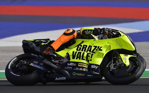 GRAZIE VALE! Ma è stata anche la festa di Valentino, alla sua ultima gara della carriera in Italia. Carena speciale a Misano: gialla con la scritta in nero "Grazie Vale!".