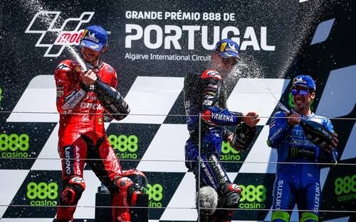 PORTIMAO: BIS DI QUARTARARO. In Portogallo vince ancora il nizzardo, partito dalla pole, davanti alla Ducati di Bagnaia (autore di una super rimonta, da 11° a 2°) e alla Suzuki di Mir. Sfiora il podio Franco Morbidelli (4°), bel 9° posto di Enea Bastianini, 12° Luca Marini, 13° Danilo Petrucci, 14° Lorenzo Savadori. Tante cadute tra i "saliscendi" di Portimao: finiscono a terra Zarco, Alex Rins, Valentino Rossi, Miller e Pol Espargaró.