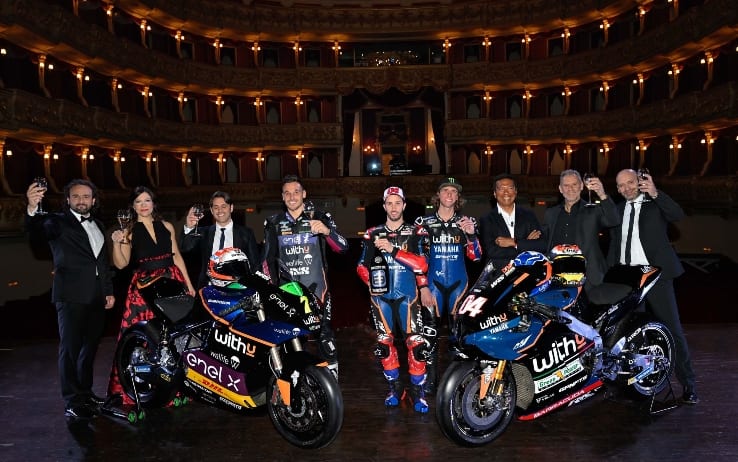 Il team WithU Yamaha RNF ha scelto il Teatro Filarmonico di Verona per presentare la nuova livrea della YZR-M1 che parteciperà per la prima volta al Mondiale MotoGP 2022, insieme alla livrea della moto che correrà in MotoE, ovvero i due campionati mondiali in cui il team WithU RNF è impegnato nella stagione che sta per iniziare. Un vero e proprio evento teatrale, accompagnato da celebri arie d’opera, cantate dalla splendida voce della soprano Francesca Dotto e dal tenore Leonardo Cortellazzi. Un’atmosfera particolare per la presentazione di una moto: Matteo Ballarin, presidente del brand WithU, ha voluto fortemente organizzare l’evento nella “sua” Verona, città dove il title sponsor WithU ha sede. Un dettaglio che testimonia la forte impronta italiana che caratterizza questa squadra, confermata dalla presenza di un pilota come Andrea Dovizioso. Al suo fianco sul palco il fondatore e team principal di RNF MotoGP, Razlan Razali, il team manager Wilco Zeelenberg, i piloti MotoGP Andrea Dovizioso e Darryn Binder, ma anche il team manager di WithU GRT RNF MotoE Filippo Conti con Niccolò Canepa, il pilota che, insieme a Bradley Smith, sarà portacolori del team per il campionato iridato MotoE.