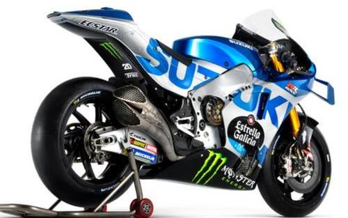 Presentata la Suzuki di Mir e Rins. I due spagnoli scenderanno in sella su una GSX-RR rinnovata, sia per il design (nuovo tocco di nero) sua sotto la carenatura (l'obiettivo era trovare maggior potenza)