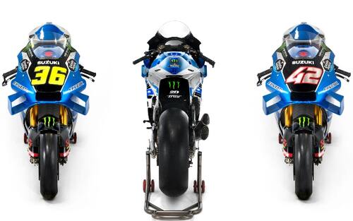 Presentata la GSX-RR del 2022 di Mir e Rins: prima di tutto spicca un nuovo design, con riflessi neri che si aggiungono ai classici blu e argento. Aggiornato anche il logo: combinazione di stile retrò e moderno. Tutto questo è abbinato allo slogan per la stagione al via il 6 marzo (prima gara a Losail): #GearingUp. L'obiettivo è tornare a lottare per il titolo, dopo un 2021 complicato