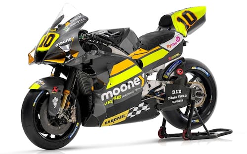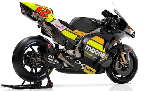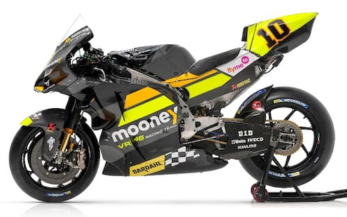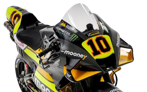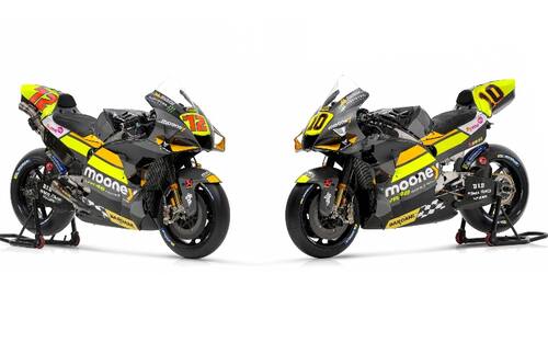 Il team di Valentino Rossi, Mooney VR46, al Teatro Rossini di Pesaro ha svelato tutti i dettagli delle moto con cui quest'anno farà il suo debutto in top-class (prima gara il 6 marzo in Qatar): sono giallissime le livree delle Ducati Desmosedici GP di Marini e Bezzecchi, il giallo fluo e nero di VR46 si mescolano al giallo ocra e al grigio scuro di Mooney ridisegnando in maniera più aggressiva la veste grafica dell'intero team