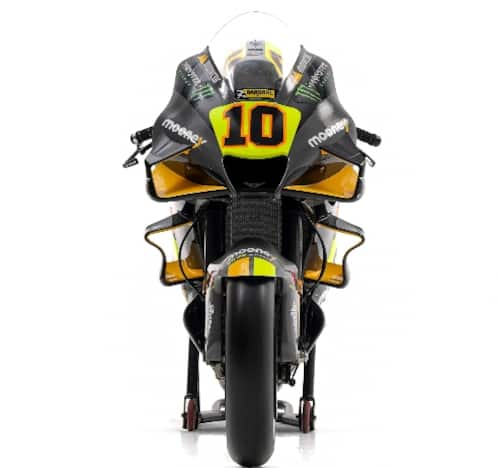 Per Luca Marini una GP22 identica a quella dei piloti ufficiali, a Marco Bezzecchi una GP21 . Bellissima la livrea ispirata a uno stile vintage e caratterizzata dal giallo (colore classico di Valentino Ross) in due diverse tonalità e da un grigio che fa da sfondo. Alla presentazione spazio anche alle Kalex con cui Celestino Vietti e Niccolò Antonelli affonteranno il Mondiale di Moto2