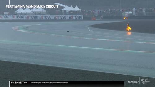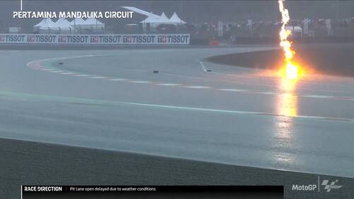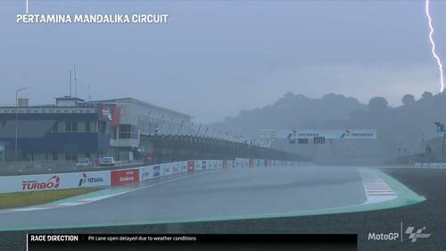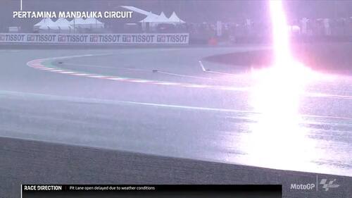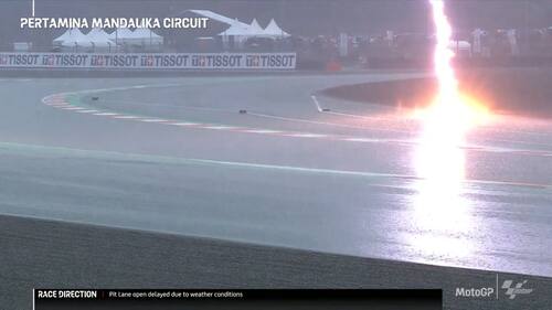 Un fulmine ha colpito il circuito di Mandalika: fortunatamente in quel momento la gara di MotoGP non era ancora partita a causa del nubifragio che si stava abbattendo sul circuito indonesiano