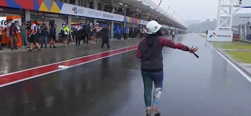 A un certo punto dal paddock è spuntata una donna che, suonando una campana, ha provato a scacciare la pioggia attraverso un 'rito magico'... E ha funzionato! Qualche minuto dopo la pioggia è cessata e la gara è potuta partire alle 9.15 italiane (con un ora e un quarto di ritardo rispetto al programma)
