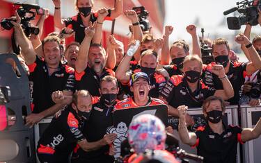 Massimo Rivola non riesce a contenere la gioia dopo la vittoria di Aleix Espargaró, la prima nella storia dell'Aprilia in MotoGP. L'Amministratore Delegato racconta a Sky un divertente aneddoto: "Sono scaramantico, ho messo anche le mutande viola oggi. Ormai sono le mie mutande da gara - ha scherzato -. Per perdere le concessioni dobbiamo ancora centrare un 2° posto, ma le perderemo. Facciamo di tutto per diventare grandi, dobbiamo essere pronti. Se le perdiamo subito avremo un anno davanti, dobbiamo ancora crescere e consolidarci".