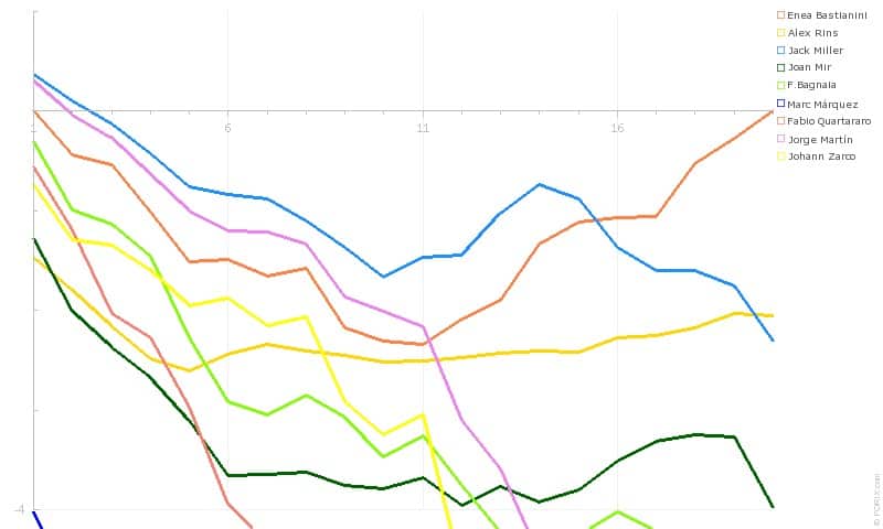 "Sì, avevamo studiato come fare una gara così, sapevamo che era un Gran Premio complicato. All’inizio soffrivo tanto nel primo settore, cercavo di non forzare troppo, quella parte era difficile fisicamente. Poi quando ho visto Rins puntarmi per due-tre volte, ho capito che era arrivato il momento di andare avanti: sono riuscito a superare Martin e mi sono avvicinato a Miller. Quando ho capito che ne avevo un po' di più, mi sono detto ‘Adesso mi tocca andare’. Quando ero in testa alla gara ho fatto qualche errorino al primo giro, però alla fine sono riuscito a mettere su un buon ritmo, ho spinto come un bastardo, fino in fondo. È stata una giornata strepitosa, ora però voglio andare a mangiare un hamburger".