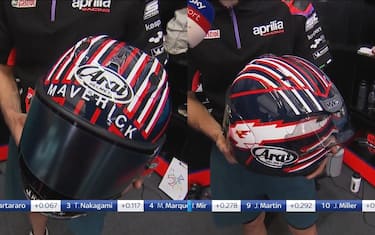 "Non c'è niente di più bello che guidare con un casco che porta il tuo nome". Con questa frase Vinales ha presentato il casco che userà a Jerez, ispirato a Top Gun, celebre film del 1986 con protagonista Tom Cruise. L'attore intepreta un tenente dell'aviazione americana, Pete Mitchell, soprannominato "Maverick" proprio come il pilota Aprilia. "I miei genitori mi hanno chiamato Maverick per quel film, quindi indossare questo casco mi rende molto felice", ha spiegato lo spagnolo