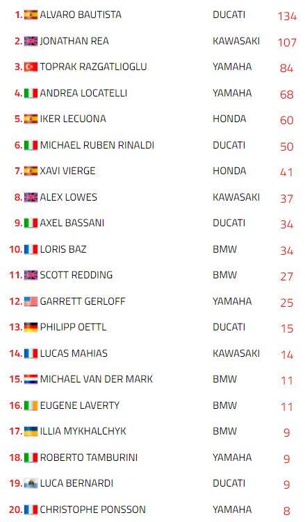 La classifica della Superbike