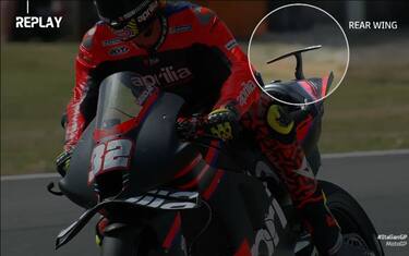 Romano Albesiano, direttore tecnico Aprilia, ha spiegato così la novità al microfono di Sky: "L'ala è un tentativo di dare carico soprattutto nella prima parte di frenata ad alta velocità, dove la moto è quasi sempre limitata dal ribaltamento in avanti: più hai carico dietro, più riesci a mettere forza frenante a terra"