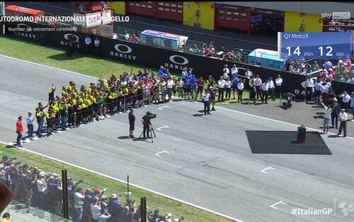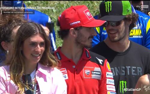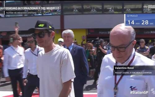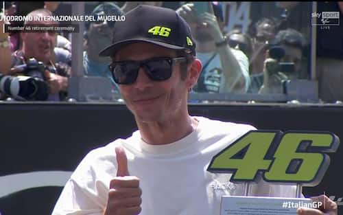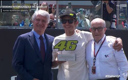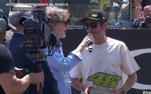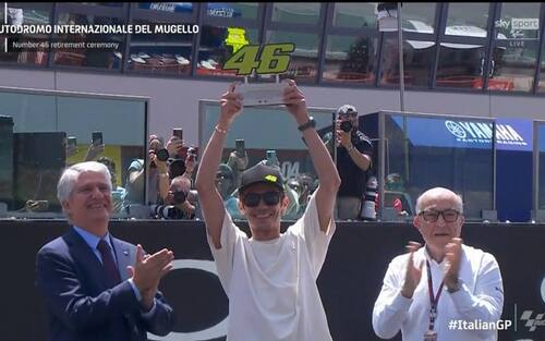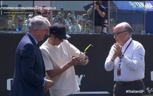 "Grazie per il meraviglioso supporto, il tifo e le emozioni di tutti questi anni - ha proseguito il campione di Tavullia -. Ci ringraziamo a vicenda perché il pubblico del Mugello è stato sempre emozionante. Ieri sera parlavo con i miei amici e dicevo che il primo giro della domenica mattina del Mugello nel warm up è una delle emozioni più grandi per un pilota di moto e per questo è stato bello fare la cerimonia qui".