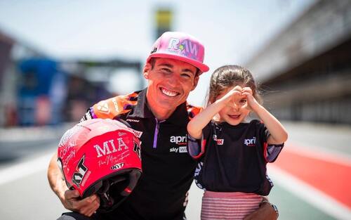 Il pilota dell'Aprilia in conferenza al Montmeló ha spiegato il significato del suo casco speciale: "Dedicato all'equipe medica che ha operato al cuore mia figlia". Il GP di Catalunya è in diretta domenica alle 14 su Sky Sport MotoGP (canale 208) e in streaming su NOW