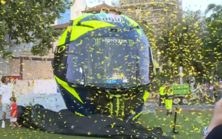 Pesaro ha deciso di omaggiare Valentino Rossi realizzando un’opera unica: Il casco più grande del mondo per il campione di motociclismo più grande di sempre. "Volevamo battere il Guinness dei primati, come Valentino ha fatto nella sua carriera", ha dichiarato il sindaco di Pesaro, Matteo Ricci. Presentato in piazza D’Annunzio, vicino al lungomare, il casco batte ogni record: 4 metri di altezza per 6 di lunghezza e l’impiego di svariati materiali come: polistirolo, legno ferro e resine. Il realizzatore Riccardo Sivelli spiega come l’opera avrà una particolarità che rende il progetto ancora più unico, ovvero la possibilità di stampare la visiera del casco gigante in oleografico/3D così che tutti i tifosi avvicinandosi avranno la percezione di osservare gli occhi di Vale. Un grande colpo a effetto e l’ennesimo esempio d’amore della terra dei motori per il più grande di sempre. Un casco da leggenda, per la leggenda Valentino Rossi.