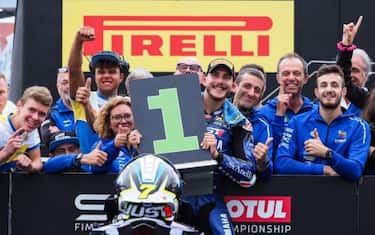 Una macchia che getta un’ombra sul campionato di Aegerter, ma che soprattutto lo costringe a vedere dilapidato il suo vantaggio: la nuova vittoria di Baldassarri lo porta a meno quattordici dalla vetta. Il pilota di Yamaha Evan Bros ha avuto la meglio di Nicolò Bulega, sorpassandolo appena prima dell’esposizione di una bandiera rossa per la terra portata in pista dalla caduta di Steven Odendaal. A completare un podio tutto italiano è Stefano Manzi, meraviglioso terzo dopo essere partito ventesimo.